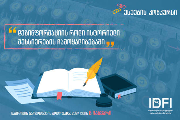 ბაკალავრიატის და მაგისტრატურის სტუდენტებისთვის ინფორმაციის თავისუფლების განვითარების ინსტიტუტი (IDFI) აცხადებს ესეების კონკურსს თემაზე: დეზინფორმაციის როლი ისტორიული მეხსიერების ჩამოყალიბებაში.