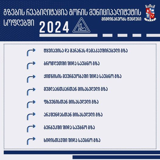 შიდა საუბნო გზებს - ბროწლეთში (1 242 მეტრი, 706 330 ლარი), ქიწნისის მეურნეობაში (1 343 მეტრი, 986 866 ლარი), ბერბუკსა (900 მეტრი, 581 148 ლარი) და ხიდისთავში (1 500 მეტრი, 1 000 457 ლარი).