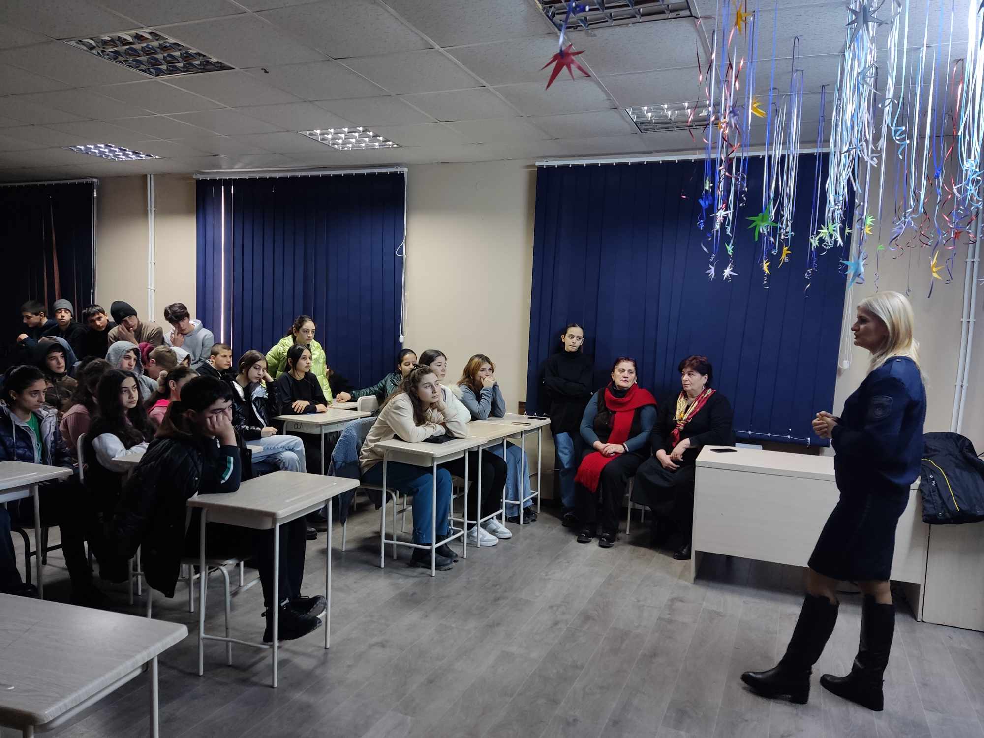 შეხვედრას საგანმანათლებლო დაწესებულების უფროსკლასელები ესწრებოდნენ. მოსწავლეებს აღნიშნულ თემაზე შინაგან საქმეთა სამინისტროს გორის რაიონული სამმართველოს უბნის უფროსი ინსპექტორი, პოლიციის მაიორი რუსუდან მარღიშვილი ესაუბრა.