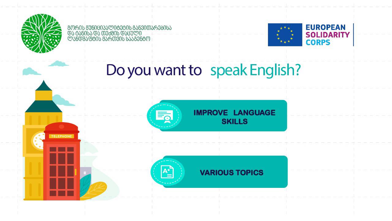 გორის მუნიციპალიტეტის განვითარებისა და და ტანისა და თეძმის დაცული ლანდშაფტის მართვის სააგენტო, მუნიციპალიტეტში მცხოვრები ახალგაზრდებისთვის ინგლისური ენის უფასო კურსის მეორე ეტაპს იწყებს.