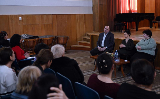მინისტრმა დაათვალიერა კოლეჯის დიდი და მცირე საკონცერტო დარბაზები, ბიბლიოთეკა, აუდიტორიები და კოლეჯის ხელმძღვანელის, ნადეჟდა მანჯავიძისგან მოისმინა ინფორმაცია სასწავლო პროცესის შესახებ. შეხვედრა, ასევე, გაიმართა კოლეჯის პედაგოგებთან.