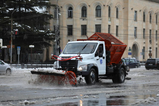 ცენტრალურ გზებზე მუშაობს შესაბამისი ტექნიკა და იყრება ტექნიკური მარილი.