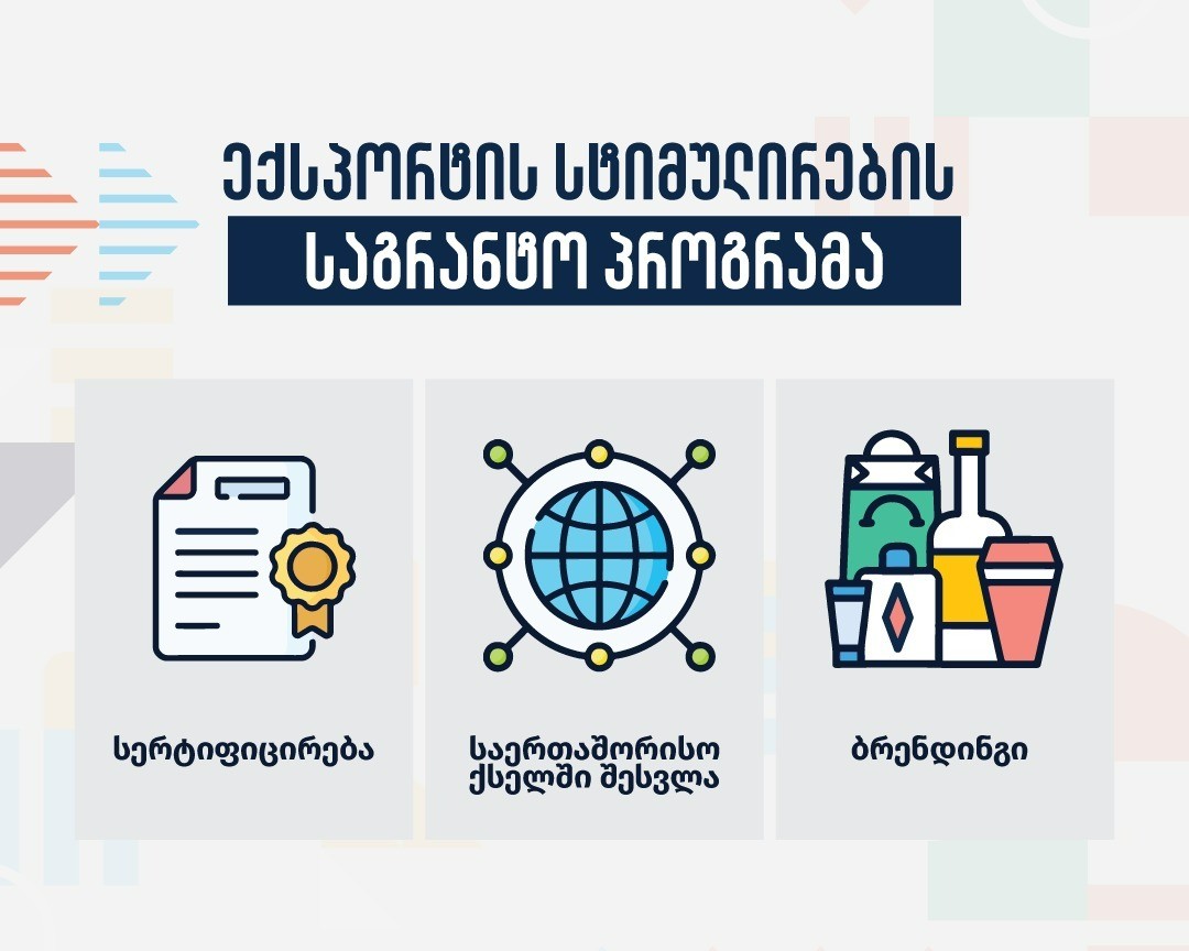 სახელმწიფო პროგრამის - „აწარმოე საქართველოში“ ფარგლებში, ექსპორტის სტიმულირების საგრანტო პროგრამა განახლებული პირობებით გრძელდება.