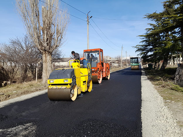 საპროექტო მონაკვეთზე, რომლის სიგრძეც 1 343 მეტრია, ასფალტის საფარი იგება.