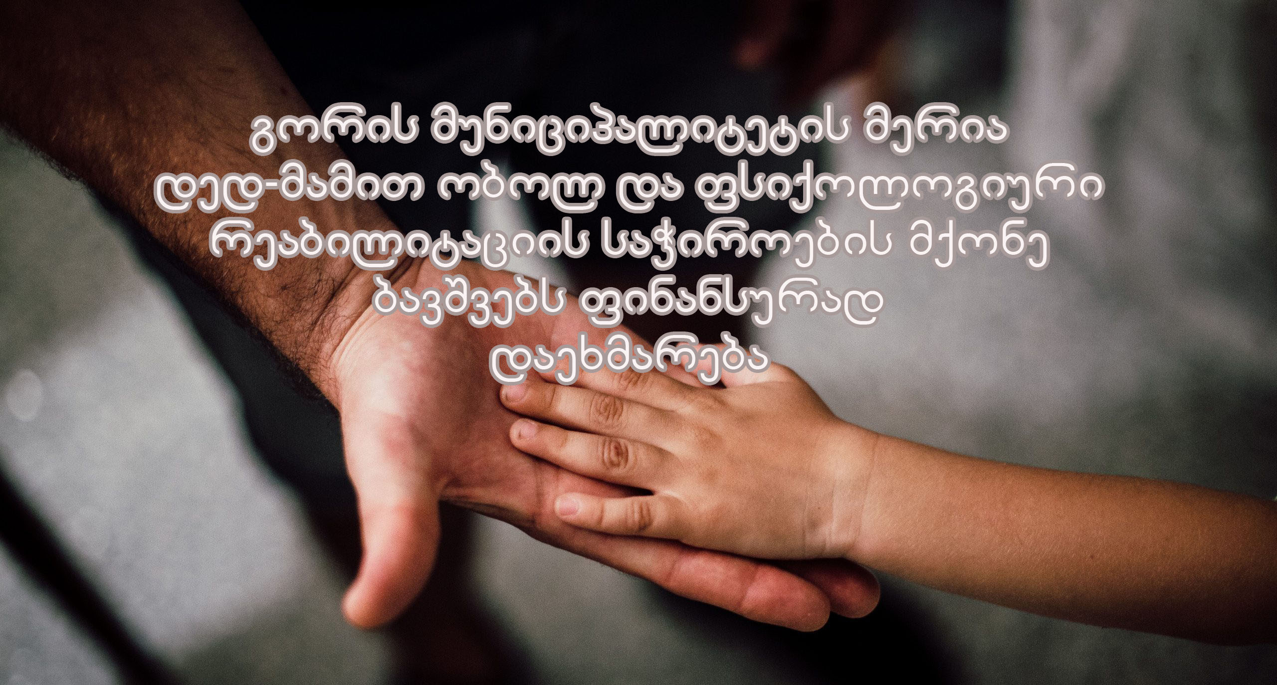 გორის მუნიციპალიტეტის მერია დედ-მამით ობოლ ბავშვებს გარკვეული თანხით დაეხმარება, ადგილობრივი თვითმმართველობა ასევე დააფინანსებს ძალადობის შედეგად ფსიქოლოგიური რეაბილიტაციის საჭიროების მქონე ბავშვების ფსიქოლოგიური რეაბილიტაციის კურსებსაც.