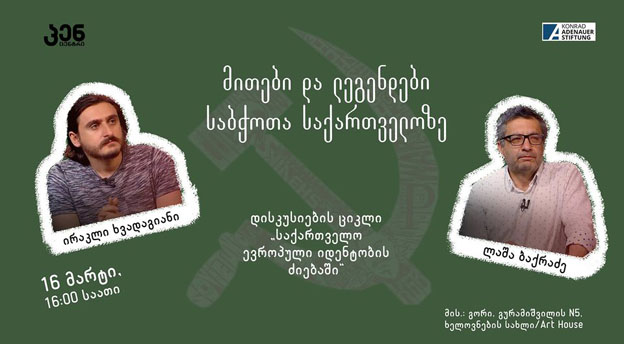 საქართველოს პენცენტრის და ხელოვნების სახლის ინიციატივით გამართული ღონისძიების ფარგლებში, თემაზე - „მითები და ლეგენდები საბჭოთა საქართველოზე“, ისტორიკოსები ლაშა ბაქრაძე და ირაკლი ხვადაგიანი ისაუბრებენ.