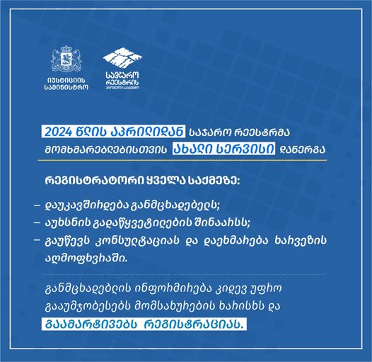 საქართველოს საჯარო რეესტრის ეროვნულმა სააგენტომ მომხმარებლისთვის ახალი სერვისი დანერგა, რომელიც აპრილიდან შევიდა ძალაში.