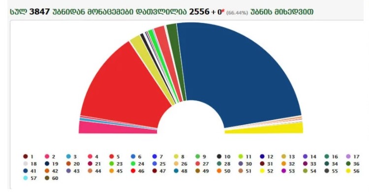 2020 წლის 31 ოქტომბრის საპარლამენტო არჩევნებზე მოქმედი 3847 უბნიდან მონაცემები დათვლილია 2556 უბანზე და შედეგები პარტიებზე ასე ნაწილდება: