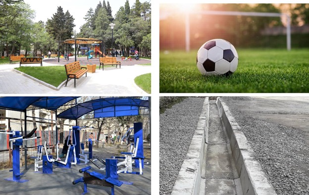 სპორტული მოედანი და დასასვენებელი სივრცე ქვახვრელში;