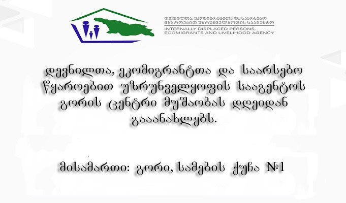 დღეიდან, 8 თებერვლიდან, მუშაობას განაახლებს დევნილთა, ეკომიგრანტთა და საარსებო წყაროებით უზრუნველყოფის სააგენტოს მოქალაქეთა მისაღები ცენტრი.