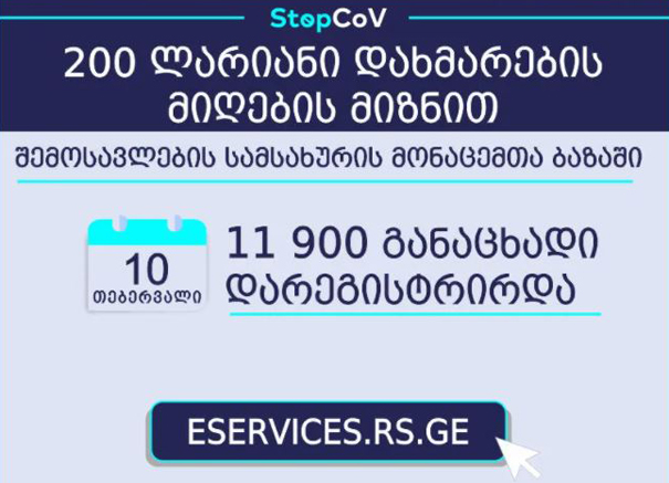 დღეის მდგომარეობით, ფინანსთა სამინისტროს შემოსავლების სამსახურის მონაცემთა ბაზაში უკვე 11 900 განაცხადია დარეგისტრირებული.
