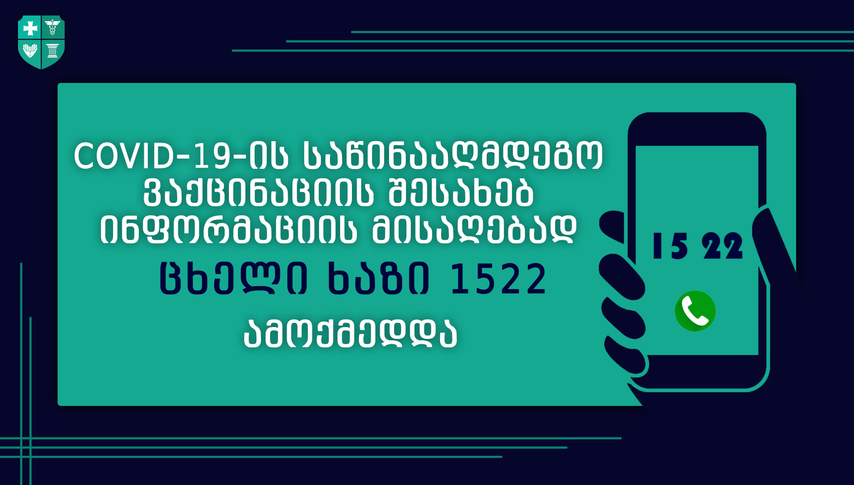 COVID-19-ის საწინააღმდეგო ვაქცინაციის შესახებ ინფორმაციის მისაღებად ცხელი ხაზი: 15 22 ამოქმედდა. როგორც დევნილთა, შრომის, ჯანმრთელობისა და სოციალური დაცვის სამინისტროში აცხადებენ, ცხელი ხაზის ამოქმედების მიზანი მსურველების საჭიროებებზე სწრაფი რეაგირებაა.