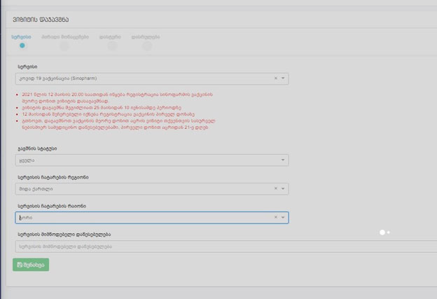 დღეიდან, 12 მაისიდან, ვაქცინაციის სპეციალურ პორტალზე 25 მაისიდან დასაჯავშნ თარიღებზე წვდომაც დაეშვა, თუმცა, საზოგადოების მხრიდან განსაკუთრებული აქტივობის ფონზე, პორტალზე შეფერხებაა და ამ ეტაპზე ვიზიტის დაჯავშნა ვერ ხერხდება.
