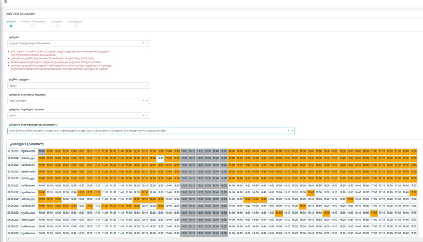 ვაქცინაციის სპეციალურ პორტალზე უკვე შესაძლებელია ,,სინოფარმით" ვაქცინაციის მეორე დოზაზე რეგისტრაცია. საზოგადოების მხრიდან განსაკუთრებული აქტივობის ფონზე, პორტალზე გუშინ საღამოდან შეფერხება იყო და ვიზიტის დაჯავშნა ვერ ხერხდებოდა. დაავადებათა კონტროლისა და საზოგადოებრივი ჯანმრთელობის ეროვნული ცენტრის მიერ შეფერხება აღმოიფხვრა და ამ ეტაპზე ,,სინოფარმით" ვაქცინაციის მეორე დოზის მიღებაზე რეგისტრაცია შეუფერხებლადაა შესაძლებელი, რაც შეეხება აღნიშნული ვაქცინის პირველი დოზის მიღების მსურველებს, 12 მაისიდან რეგისტრაცია დასრულდა.