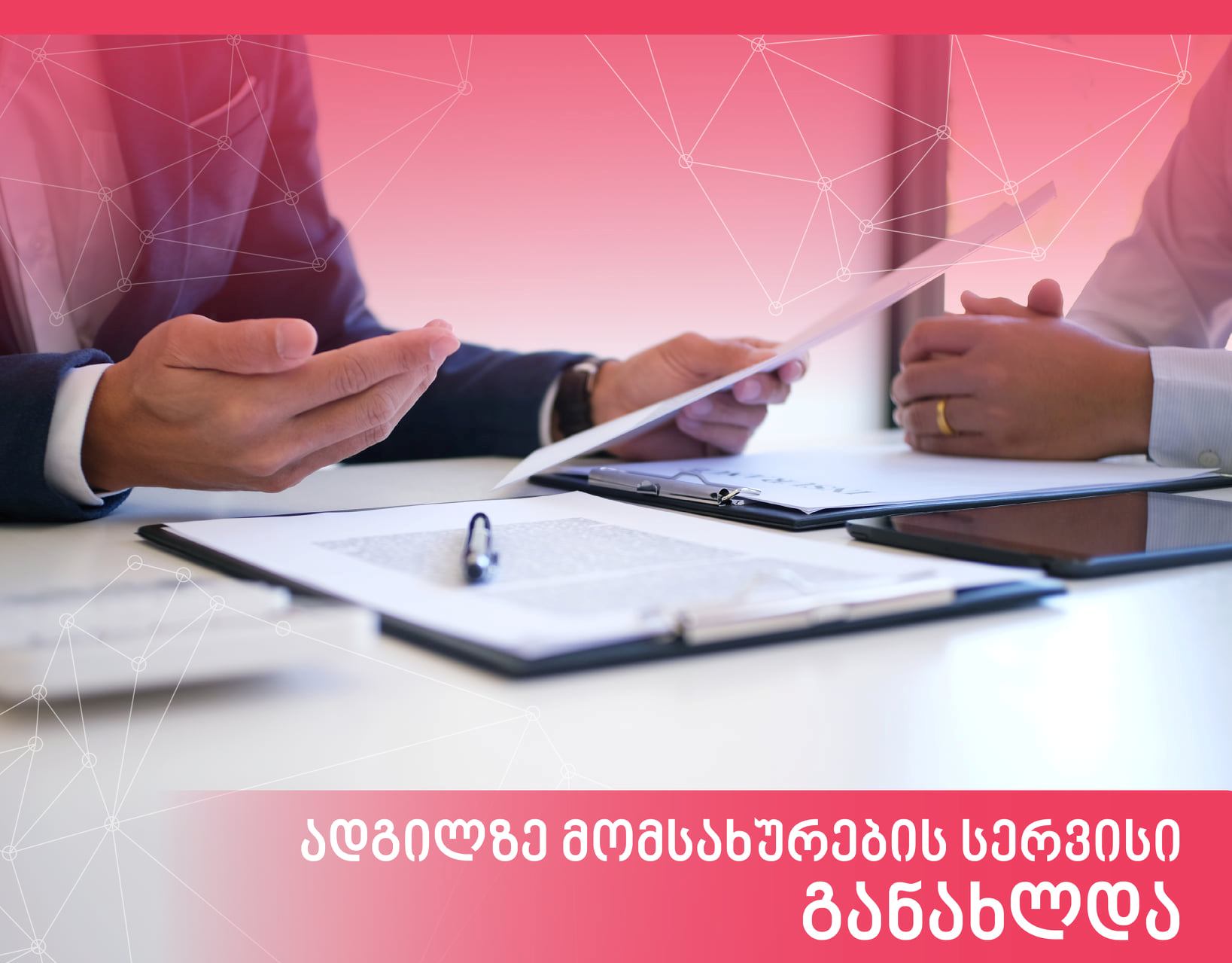 სახელმწიფო სერვისების განვითარების სააგენტომ ადგილზე მომსახურების სერვისი განაახლა. პირებს, რომელთაც სურთ სახელმწიფო სერვისების განვითარების სააგენტოს მომსახურებით ადგილიდან გაუსვლელად სარგებლობა, მაგალითად: საქართველოს მოქალაქის ბიომეტრიული პასპორტი, პირადობის/ბინადრობის ელექტრონული მოწმობა, კვალიფიციური ხელმოწერისთვის საჭირო PIN/PUK კოდების აღდგენა, კვალიფიციური ელექტრონული შტამპის სერტიფიკატის გაცემა და სხვა, შეუძლიათ, ადგილზე მომსახურების ელექტრონული განაცხადი შეავსონ სახელმწიფო სერვისების განვითარების სააგენტოს ვებგვერდზე - sda. gov. ge.