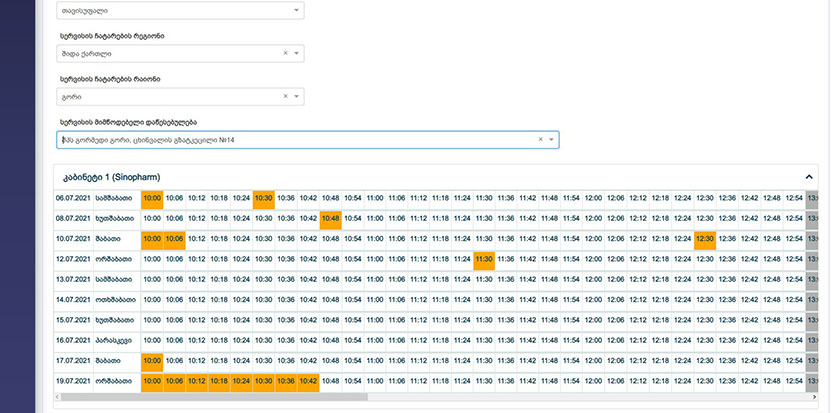 ამ ეტაპზე, აცრის ვიზიტის დაჯავშნა შესაძლებელია ,,სინოფარმის" ვაქცინაზე.
