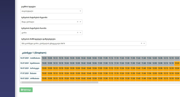 რაც შეეხება ჰოსპიტალს, აღნიშნულ სამედიცინო დაწესებულებაში ვიზიტის დაჯავშნა შესაძლებელია 20 ივლისის ჩათვლით და ამ ეტაპზე მხოლოდ 5 თავისუფალი ადგილია დარჩენილი: 2 ადგილი 19 ივლისს, ორშაბათს და 3 თავისუფალი ადგილია 20 ივლისს. სამხედრო ჰოსპიტალში, ,,გორმედის“ მსგავსად, ამჟამად მხოლოდ ,,სინოფარმით“ ვაქცინაციაა შესაძლებელი.