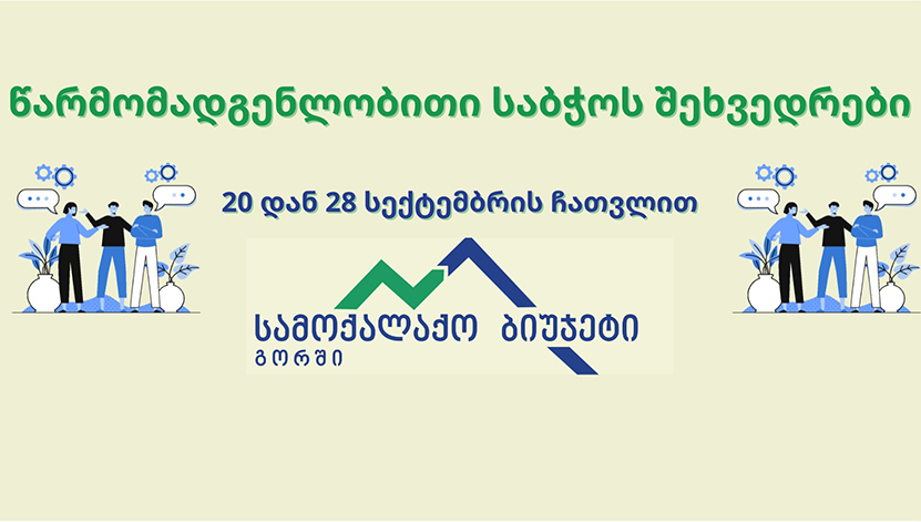 20-დან 28 სექტემბრის ჩათვლით წარმომადგენლობითი საბჭოს შეხვედრები გაიმართება გორში ხუთ ლოკაციაზე და ასევე მუნისიპალიტეტის 5 სოფელში.