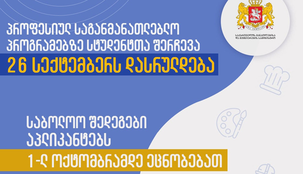 პროფესიულ საგანმანათლებლო პროგრამებზე ჩაბარების მსურველთა შერჩევის პროცესი 26 სექტემბერს დასრულდება, - ამის შესახებ ინფორმაციას განათლებისა და მეცნიერების სამინისტრო ავრცელებს.