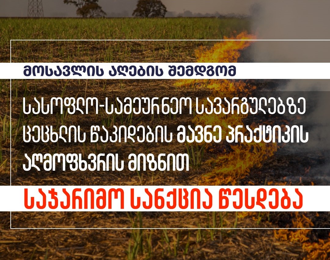 „როგორც არსებულმა პრაქტიკამ აჩვენა, ბოლო დროს გახშირებულია შემთხვევები, როდესაც სასოფლო-სამეურნეო სავარგულების მფლობელები, მოსავლის აღების შემდგომ ახდენენ მიწის ნაკვეთზე დარჩენილი ნაწვერალისთვის ცეცხლის წაკიდებას დაწვის მიზნით, რაც დიდ ზიანს აყენებს როგორც ნიადაგს ასევე გარემოს. ამასთანავე დიდია მიმდებარე ნაკვეთებზე, მინდვრებზე, ტყეებზე ან დასახლებულ პუნქტებზე ხანძრის გავრცელების ალბათობა. ამიტომ მიზანშეწონილია ასეთი ქმედებისათვის არსებობდეს შემაკავებელი ეფექტის მქონე მკაცრი ადმინისტრაციული ჯარიმა“, - ნათქვამია სამინისტროს მიერ გავრცელებულ ინფორმაციაში.
