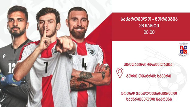 გორის თეატრის სკვერში საქართველო-ნორვეგიის საფეხბურთო მატჩის პირდაპირი ტრანსლაცია გაიმართება.