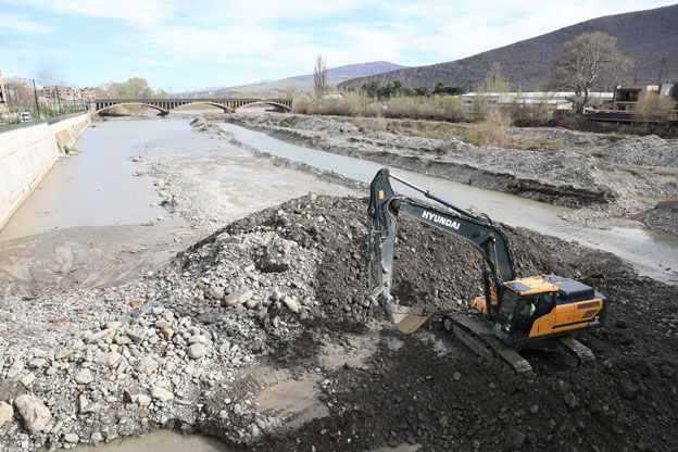 გორში, მდინარე მტკვრის კალაპოტის ნაპირსამაგრი კედლის მშენებლობის სამუშაოები აქტიურ რეჟიმში მიმდინარეობს.