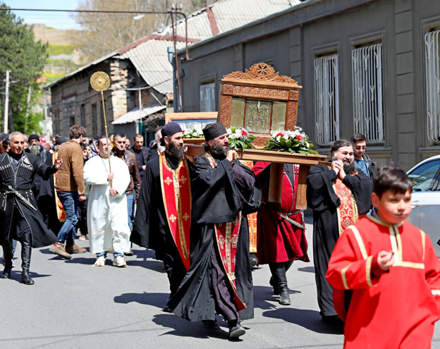 ქალაქის ქუჩებში ტრადიციული საზეიმო მსვლელობისას კი სასულიერო პირებმა მოსახლეობა დალოცეს და ქუჩები აკურთხეს.