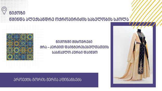 პროექტი გორის მერიის თანადაფინანსებით ხორციელდება და ჭრა-კერვის შესწავლის გარდა, ნიქოზში მოქმედი ხელოვნების სკოლის შემოქმედებითი წრეების მოსწავლეებისთვის ტრადიციული სამოსის შექმნას ითვალისწინებს.