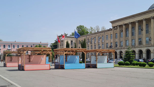 ქალაქის ცენტრალურ მოედანზე საქართველოს დამოუკიდებლობის დღისთვის მზადება აქტიურად მიმდინარეობს
