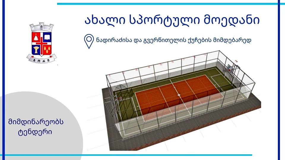 გორში, წმინდაწყლის დასახლებაში, ნადირაძისა და გვერდწითელის ქუჩების მიმდებარედ სპორტული მოედანი მოეწყობა.