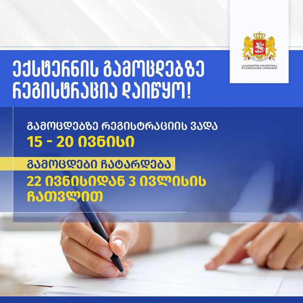 საქართველოს განათლებისა და მეცნიერების სამინისტრომ I-XII კლასების პროგრამის ექსტერნატის ფორმით დაძლევის მსურველთათვის რეგისტრაციის და გამოცდების ჩატარების ვადები განსაზღვრა.
