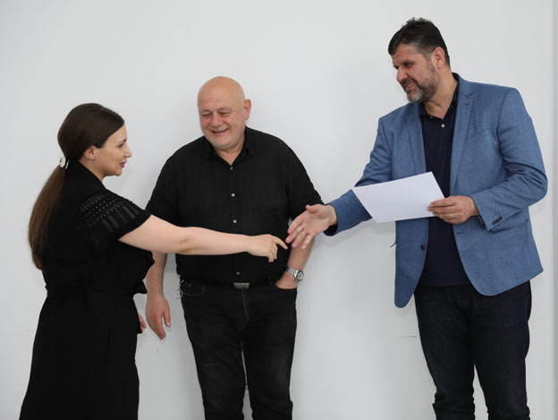 პროექტში ჩართულ მოქალაქეებს ენის შემსწავლელი კურსის გავლის დამადასტურებელი დოკუმენტები ადგილობრივი ხელისუფლების წარმომადგენლებმა, მერის მოადგილემ თამაზ შიოშვილმა და საკრებულოს თავმჯდომარემ დავით რაზმაძემ გადასცეს.
