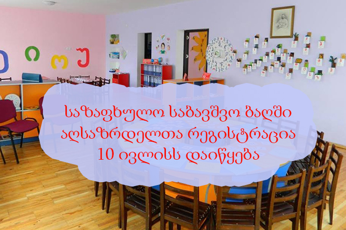 საზაფხულო ბაღში აღსაზრდელთა ჩარიცხვაზე რეგისტრაცია 10-დან 25 ივლისის ჩათვლით გაგრძელდება.