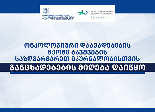 თურქეთის „ანადოლუს სამედიცინო ცენტრში“, ესპანეთის „ქირონ სალუდის სამედიცინო ცენტრსა“ და ისრაელის „იხილოვის სამედიცინო ცენტრში“ ონკოლოგიური დიაგნოზის მქონე ბავშვების სამკურნალოდ წასაყვანად სახელმწიფო დაფინანსების მისაღებად განცხადებების მიღება დაიწყო.