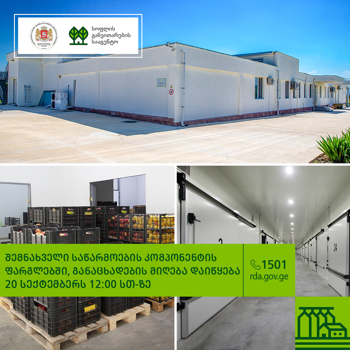 შემნახველი საწარმოების კომპონენტის ფარგლებში, განაცხადების მიღება 20 სექტემბერს 12:00 სთ-ზე დაიწყება.