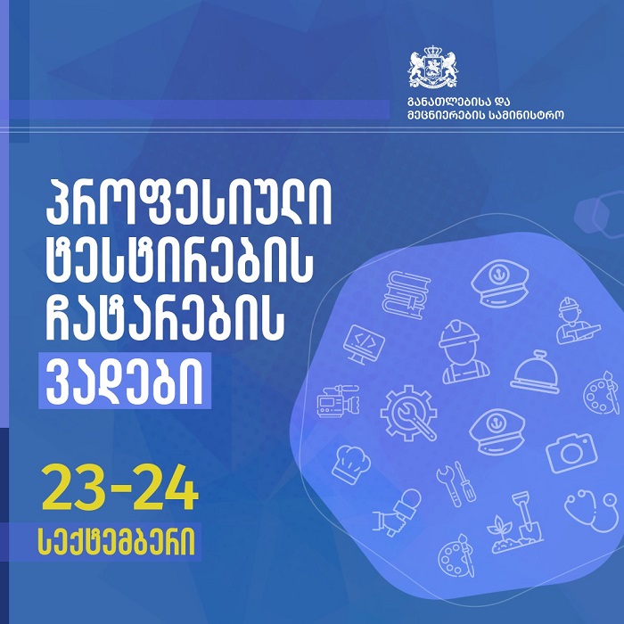 ტესტირება საბუნებისმეტყველო მეცნიერებებში (ქიმია, ფიზიკა, ბიოლოგია) 23 სექტემბერს, ხოლო წიგნიერებასა და რაოდენობრივ წიგნიერებაში 24 სექტემბერს ჩატარდება.