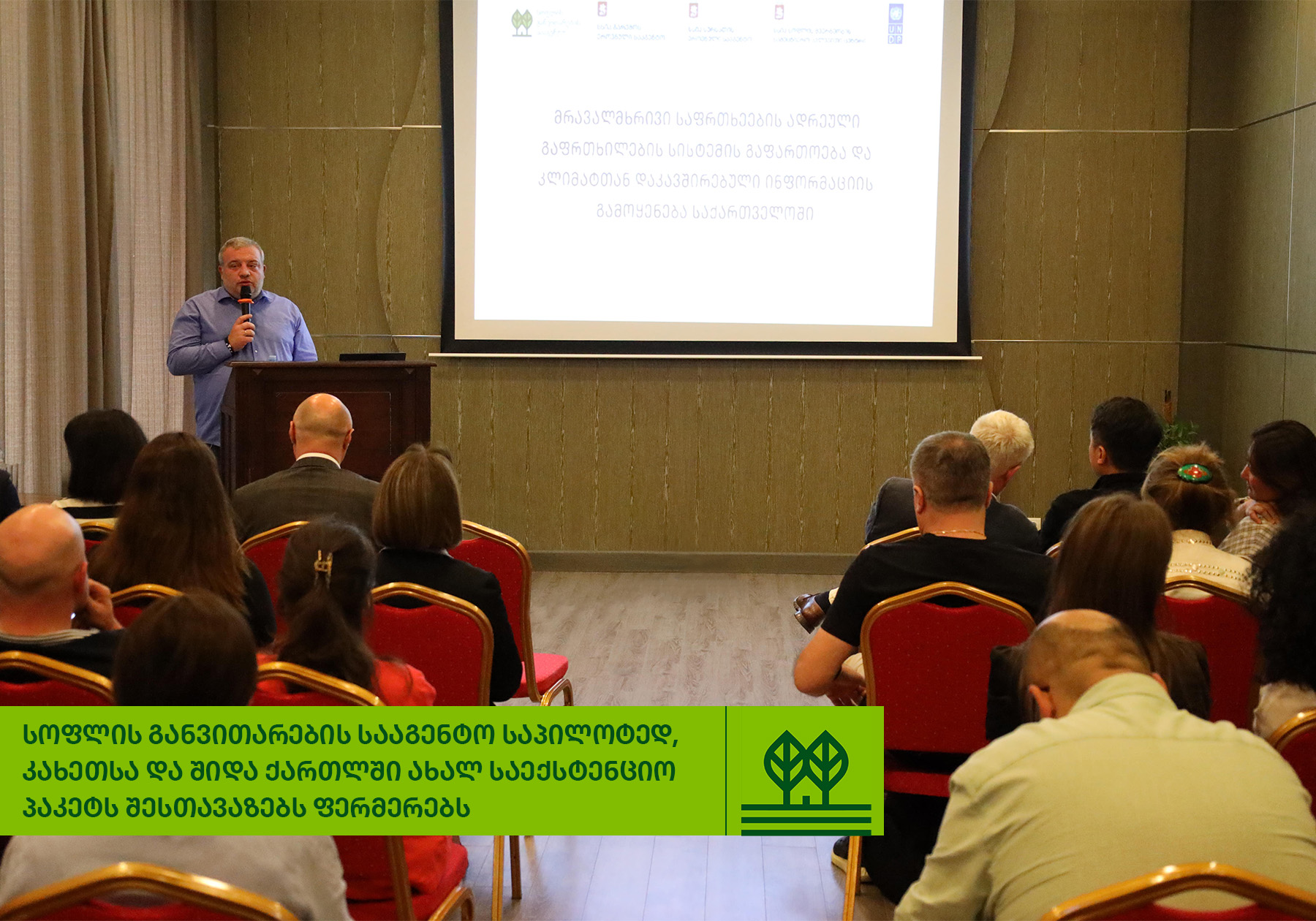 სოფლის განვითარების სააგენტო, საპილოტედ, შიდა ქართლელ და კახელ ფერმერებს ახალ საექსტენციო პაკეტს შესთავაზებს. კერძოდ, ახალი პროგრამის საშუალებით, საპილოტედ, ქვეყნის 2 რეგიონში - შიდა ქართლსა და კახეთში გავრცელებული ძირითადი სასოფლო-სამეურნეო კულტურების მწარმოებლებისათვის ხელმისაწვდომი იქნება თანამედროვე საექსტენციო პაკეტი, რაც გულისხმობს, ფერმერებისთვის ამინდის გათვალისწინებით შემუშავებული რეკომენდაციების მიწოდებას.