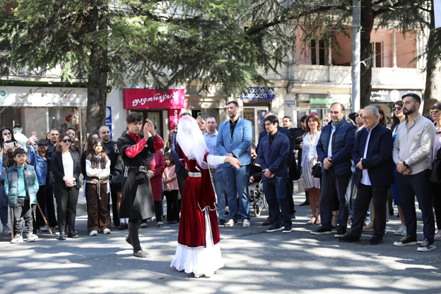 ადგილობრივი ხელისუფლების წარმომადგენლებმა, გორთან დამეგობრებული ქალაქებიდან - ოჟიშიდან (პოლონეთი) და უთენადან (ლიეტუვა) სტუმრად მყოფ დელეგაციის წევრებთან ერთად, თეატრის მიმდებარედ გამოფენილი პროდუქცია, ხელოვანების ნამუშევრები და სხვადასხვა ორგანიზაციის კუთხეები დაათვალიერეს.