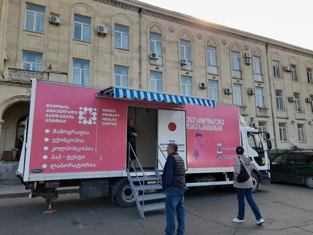 საკრებულოს შენობის წინ, მოედანზე (სტალინის ქ. 16) მოძრავ ამბულატორიულ ავტომობილში, კვალიფიციური ექიმების მეთვალყურეობით, ქალები მამოგრაფიას, პაპტესტს და კოლპოსკოპიას უფასოდ იტარებენ.