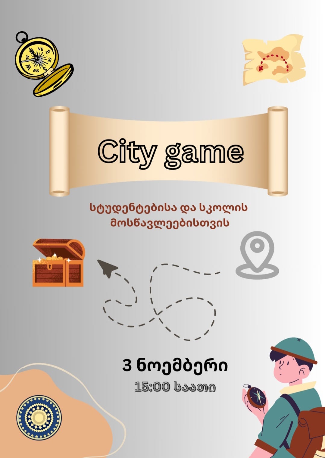„დიმიტრი ყიფიანის საინიციატივო საზოგადოება" სტუდენტებს და სკოლის მოსწავლეებს (7-12 კლასი) გასართობ-საგანმანათლებლო პროექტში - ,,City Game" მონაწილეობას სთავაზობს.