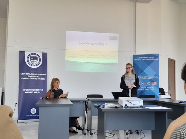 ღონისძიებას საინფორმაციო ცენტრის ექსპერტი თამარ ჭითანავა უძღვებოდა, რომელმაც დამსწრე საზოგადოებას საქართველოს ნატოში ევროატლანტიკური ინტეგრაციის პროცესები და სამომავლო პერსპექტივები გააცნო.