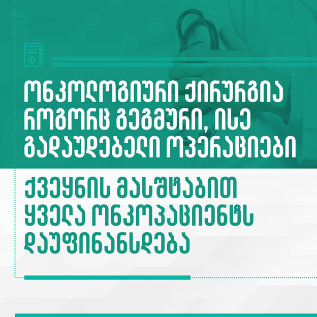 „საქართველოს მთავრობის მიერ, მიმდინარე წლის აგვისტოში მიღებული გადაწყვეტილებით ჰორმონოთერაპია, ქიმიოთერაპია, სხივური თერაპია და მედიკამენტები, ქვეყნის მასშტაბით, ყველა ონკოლოგიურ პაციენტს უფინანსდებოდა. ახლადდამტკიცებული ცვლილების მიხედვით კი მოქალაქეებისთვის თანაბრად იქნება ხელმისაწვდომი როგორც ქიმიო/ჰორმონო/სხივური თერაპიებისა და მედიკამენტების, ისე ონკოლოგიური ქირურგიის დაფინანსება“, - აცხადებენ უწყებაში.