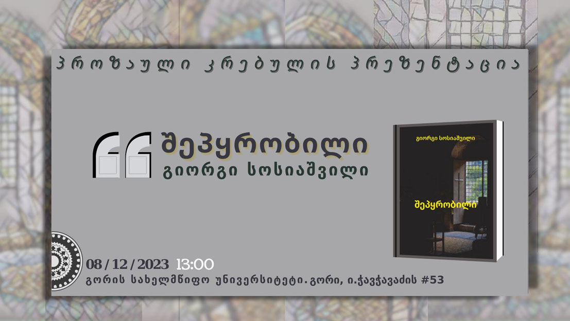 გორის სახელმწიფო უნივერსიტეტში გიორგი სოსიაშვილის ახალი პროზაული კრებულის პრეზენტაცია გაიმართება.
