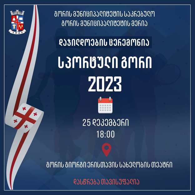 დღეს, 25 დეკემბერს, გორელი სპორტსმენების დაჯილდოების ცერემონია „სპორტული გორი 2023“ ჩატარდება.