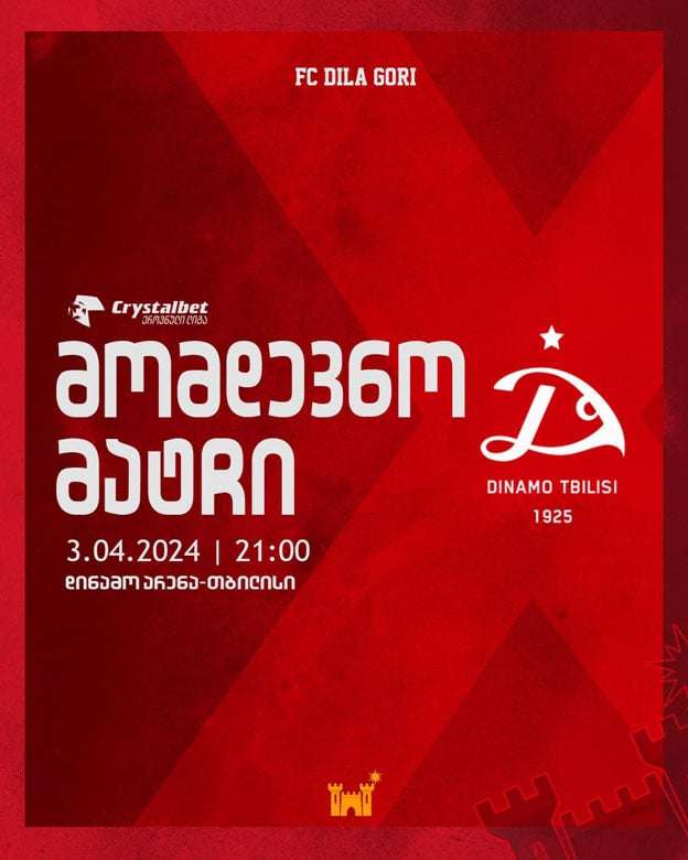 საფეხბურთო მატჩი ხვალ, 3 აპრილს, 21:00 საათზე დაიწყება. თამაში დინამო არენაზე ჩატარდება.
