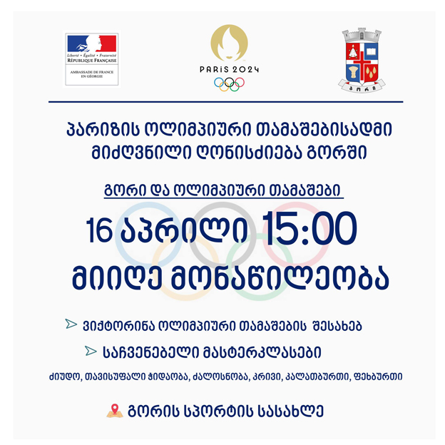 ხვალ, 16 აპრილს, გორში 2024 წლის პარიზის ოლიმპიური თამაშებისადმი მიძღვნილი ღონისძიება გაიმართება.