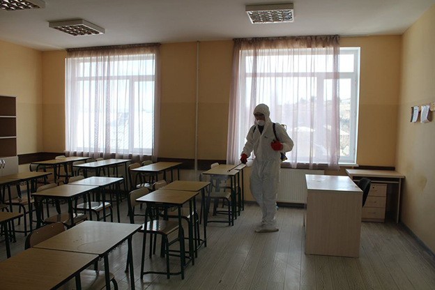 კორონავირუსის გავრცელების პრევენციის მიზნით, გორის მუნიციპალიტეტის ტერიტორიაზე - საჯარო სკოლებში, საბავშვო ბაღებში, საზოგადოებრივი თავშეყრის ადგილებში, საჯარო სამსახურებში სადეზინფექციო სამუშაოები მიმდინარეობს.