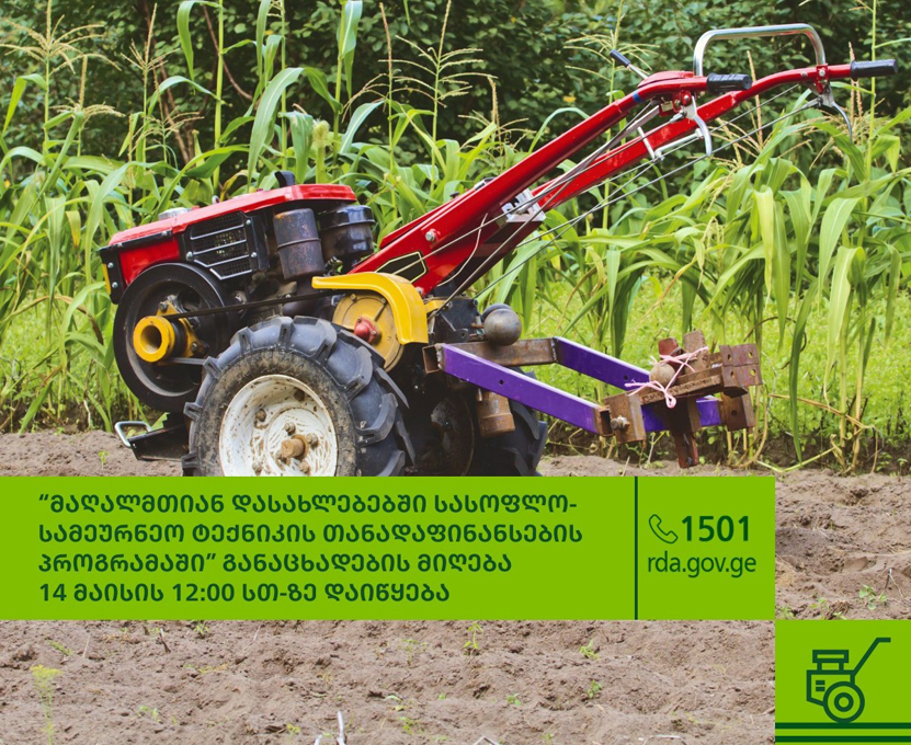 მაღალმთიან დასახლებებში სასოფლო-სამეურნეო ტექნიკის თანადაფინანსების პროგრამაში განაცხადების მიღება 2024 წლის 14 მაისის 12:00 საათზე დაიწყება.