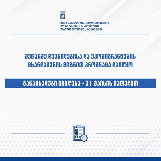 როგორც სააგენტოში აცხადებენ, ინვენტარის შეძენა 7500 ლარის ფარგლებში მოხდება და პროგრამის მიზანს დევნილთა და ეკომიგრანტთა სამეწარმეო საქმიანობის ხელშეწყობა წარმოადგენს.