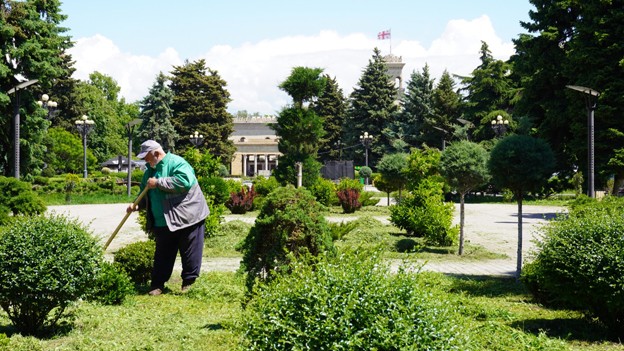 სახის სეზონური სამუშაოები მიმდინარეობს. კეთილმოწყობის სააგენტოს თანამშრომლები ბალახის